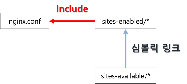 - sites-enabled: sites-available 디렉터리의 설정 파일들을 심볼릭 링크로 지정한다.