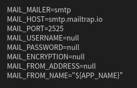 Laravel 프로젝트로 돌아와 .env 파일을 열고 MAIL_ ~ 로 시작하는 설정 정보를 확인합니다.