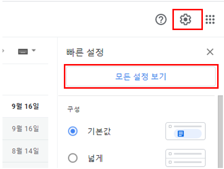로그인 후, 우측 상단 톱니바퀴 → 모든 설정 보기를 클릭합니다.