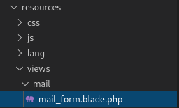 Mail:send 함수의 첫 번째 인자를 mail_mail_form으로 지정했는데, 이것은 resources/views/ 경로에 mail/mail_form.blade.php 파일을 의미합니다.