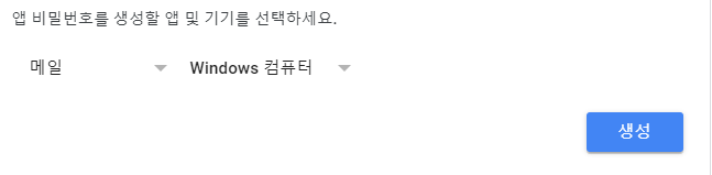 가장 아래 '앱 비밀번호를 생성할 앱 및 기기를 선택하세요.' 항목에서 다음과 같이 지정합니다.