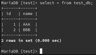 mysql> insert into test_db(2,'BBB');
