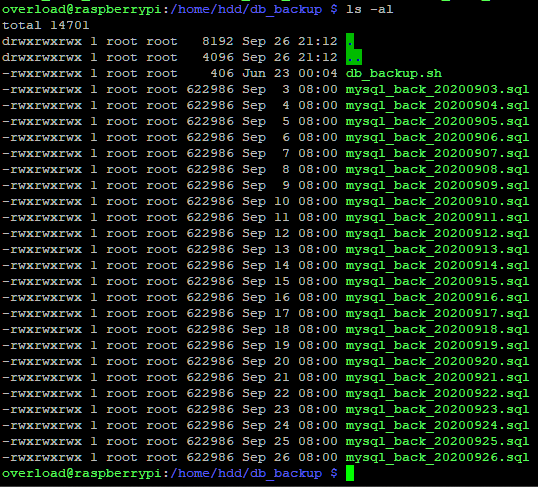 저는 개인적으로 사용하고 있는 라즈베리파이에서 mariaDB 백업을 위 설정을 이용해 백업 파일을 관리하고 있습니다.