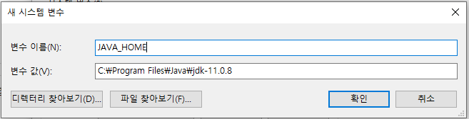 변수 이름은 JAVA_HOME으로 설정합니다.
