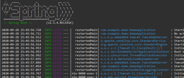 서버를 시작하면 콘솔 창에 위와 같이 로그를 출력해줍니다.