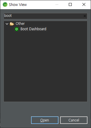 Show View 창에서 boot로 검색 후, Boot Dashboard를 열어주면 됩니다.