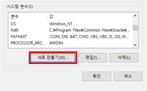 시스템 변수 항목에서 새로 만들기를 누릅니다.