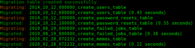 $ php artisan migrate