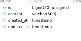 $ php artisan make:migration create_memos_table;