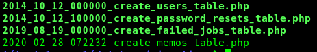 create_memos_table.php 이외의 파일은 laravel 설치 시, 기본적으로 포함하고 있는 마이그레이션 파일입니다.
