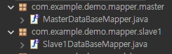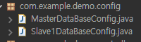 위 사진과 같이 com.example.demo 경로에 config라는 패키지를 생성하고 안에 각각 MasterDataBaseConfig.java, Slave1DataBaseConfig.java 파일을 생성합니다.