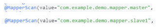 @MapperScan(value="com.example.demo.mapper.master", sqlSessionFactoryRef="masterSqlSessionFactory")