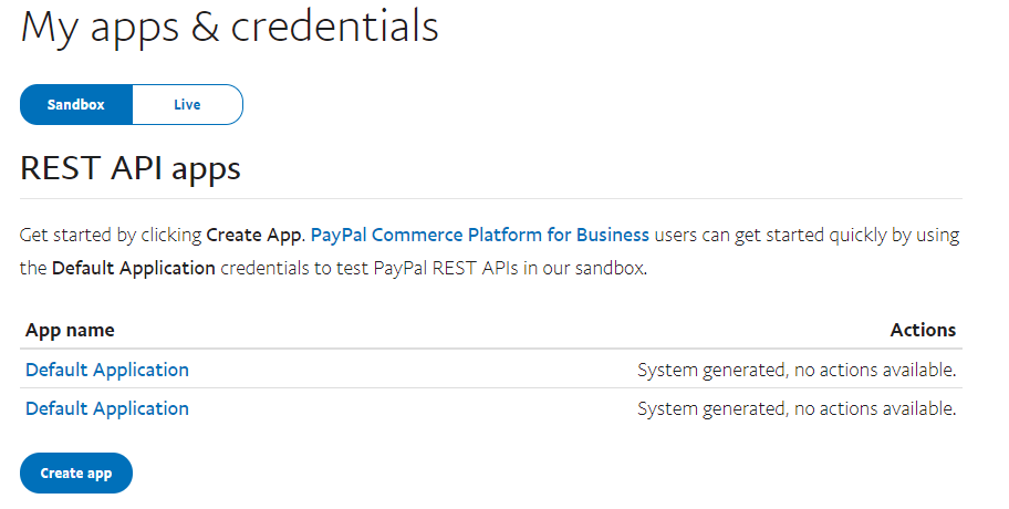 Log in to the Dashboard to create, edit, and manage PayPal apps. PayPal apps give you sandbox and live credentials that you use to make API calls, build, and test integrations. Non-U.S. developers: read our FAQ.