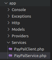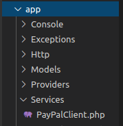 app 폴더에 Service 폴더를 생성하고 그 안에 PayPalClient.php 파일을 생성합니다.