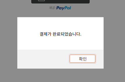 javascript에서 정의한대로 결제가 성공적으로 이루어졌습니다.