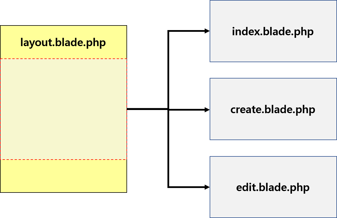 @yield('content')는 @section('content')로 지시된 데이터를 보여주겠다는 선언입니다.