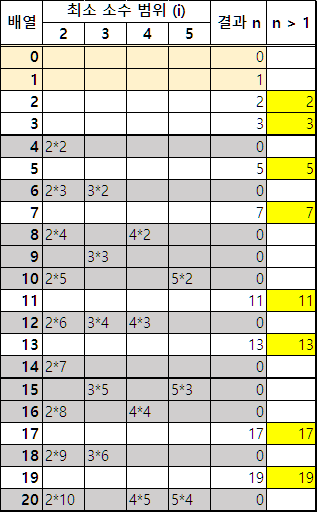 모든 소수를 걸러 냈다면 연산된 데이터는 다음과 같이 바뀝니다.