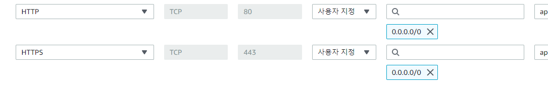 만약 AWS의 EC2를 이용해 배포하는 경우 해당 인스턴스의 보안 그룹 인바운드를 아래와 같이 http, https 두 접근에 대해 허용해주어야 합니다.